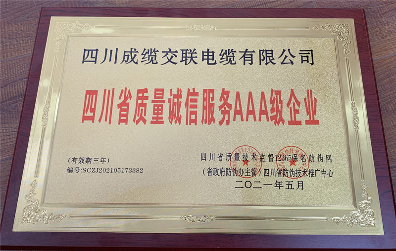 四川省质量诚信服务AAA级企业